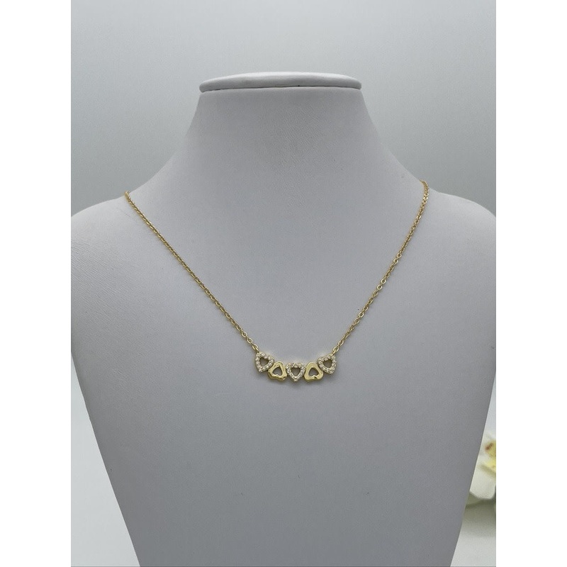 Experience luxury and elegance with our Z1581NL 5 Hearts Gold Plated Necklace. Made with genuine gold plated 925 sterling silver and cubic zirconia, this necklace exudes sophistication and style. Its 18" length makes it the perfect accessory for any occasi