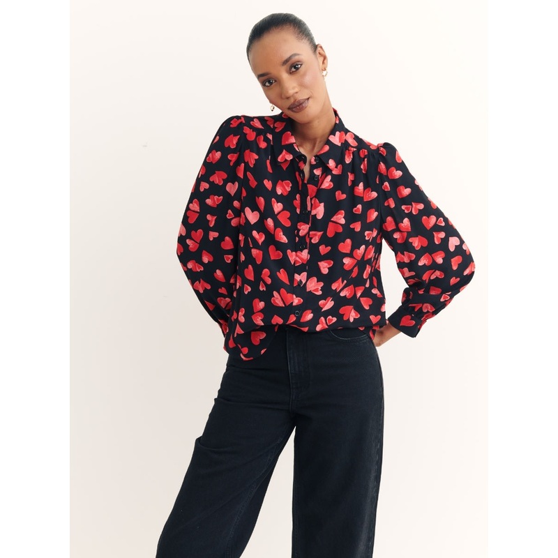 Make all your other tops jealous with our dreamy Zara blouse. Featuring long sleeves and smart centre buttons, it's complete with a romantic print that's sure to get your heart racing. Team the black blouse with denim or trousers for a cool but comfortable