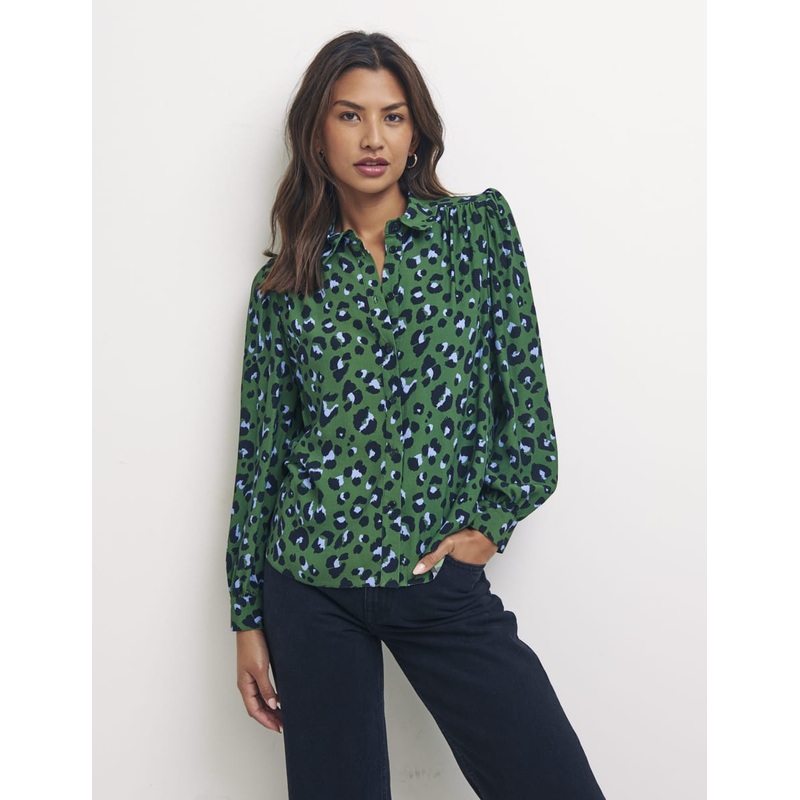 Update your shirt collection with the green Zara. A fun leopard print decorates the relaxed fitting piece, while a smart collar, classic button-through front and gathered shoulder detail complete the shirt. Wear yours with your favourite pair of Nobody's C