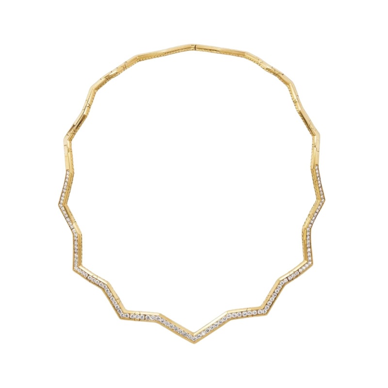 Zig Zag Stax Necklace in 18K Yellow Gold with Diamonds, 5mm