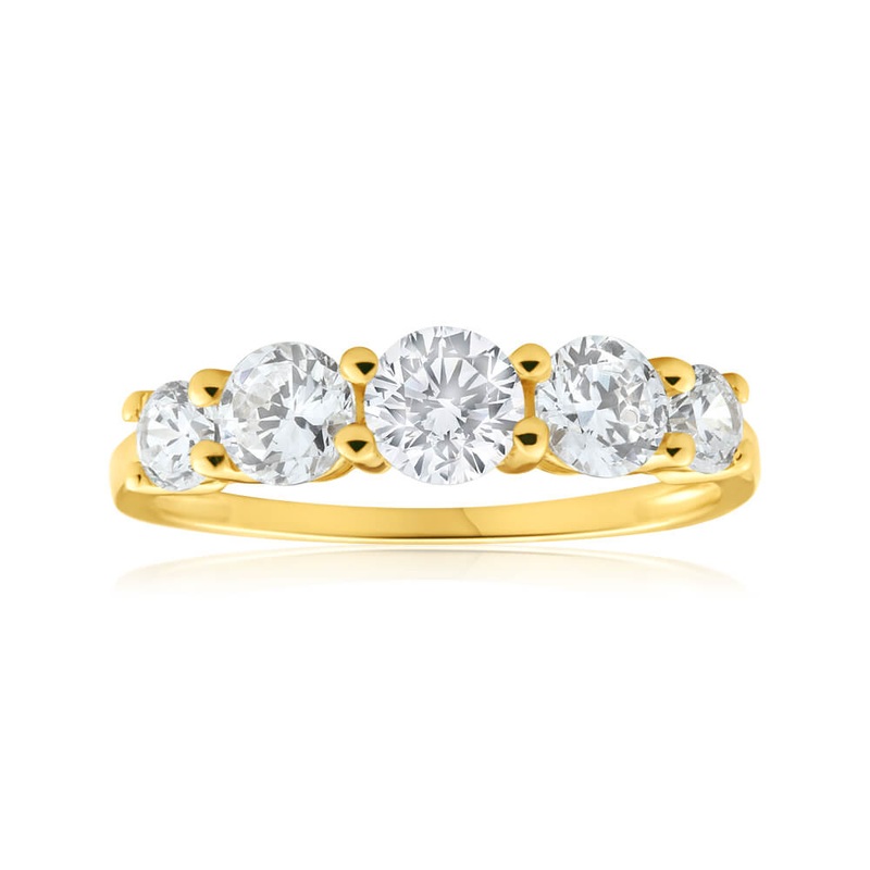 Zirconia 5 Stone Graduated Ring in 9ct Yellow Gold