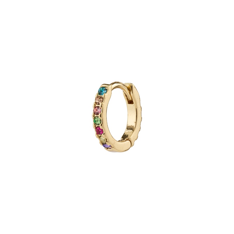 Find beauty in every little thing! Classic gold-plated huggie hoop decorated with colourful Preciosa crystals and with an easy-to-use click clasp. An earring in a timeless design that can be styled with everything and mixed and matched with multiple earrings in a trendy asymmetrical look. The earring is made from 87% recycled material. Please note that this is a single earring, not a set.