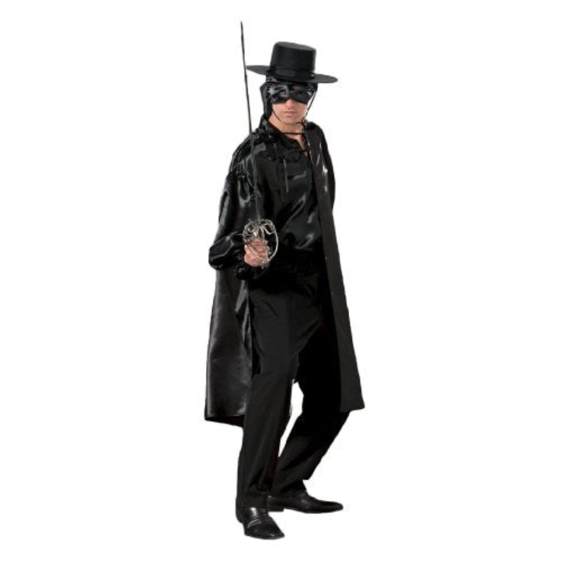 Includes: Black satin pullover shirt with keyhole eyelet opening, matching satin pants, satin cape and mask.4 PiecesMade in USA /High-quality fabric /Hat, sword, and boots not included and available separately.Color: Black (shown)Size: M (38-40), L (42-44)