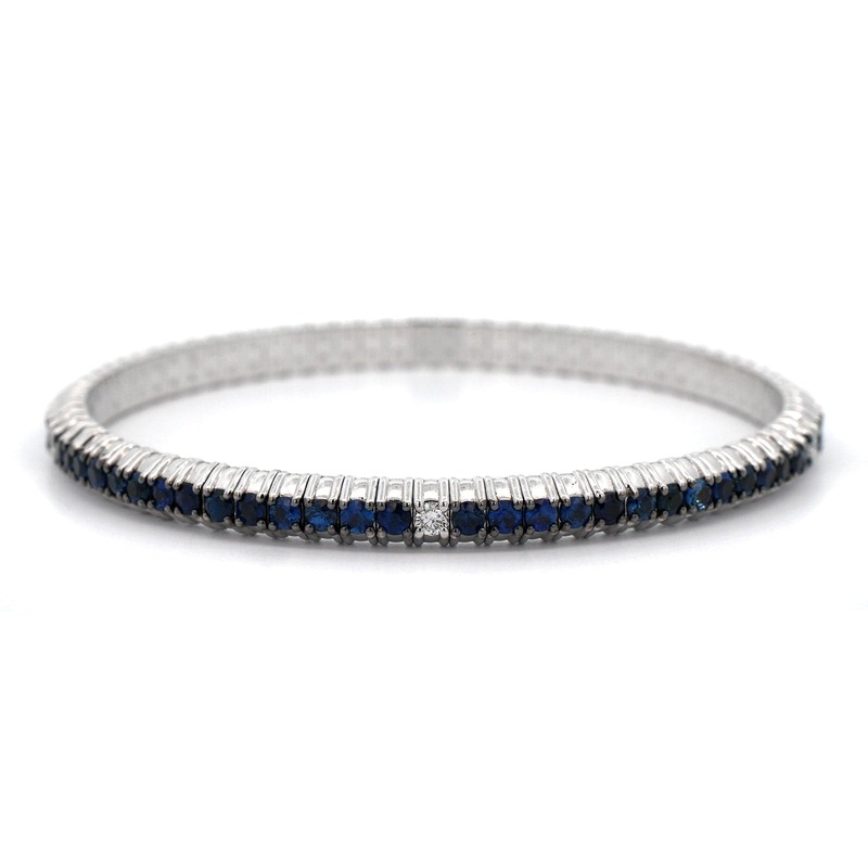Zydo 18K White Gold Blue Sapphire and Diamond Stretch Bracelet